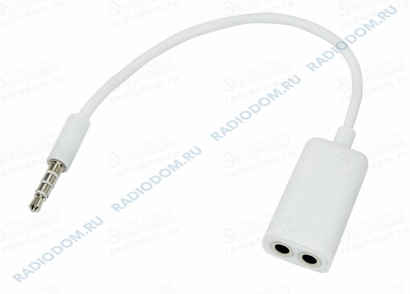 Переходник Jack 3,5 штекер - 2 Jack 3,5 гнездо стерео пластик белый шнурок 0,1м Rexant