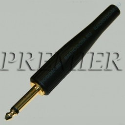 Разъем Jack 6,3мм штекер моно резин.корпус черный на кабель 1-120G BK Premier