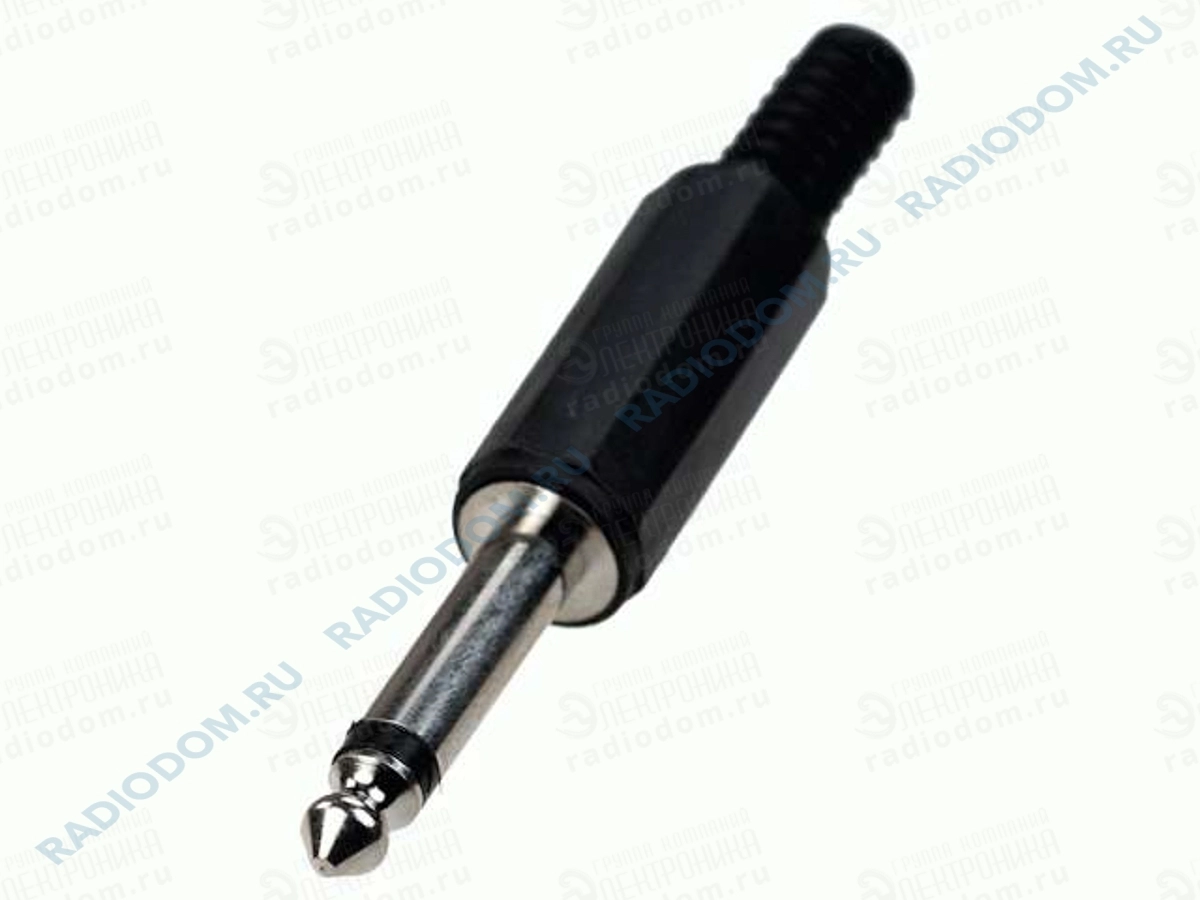 Разъем Jack 6,3мм штекер моно пластик черный на кабель 1-100 Premier