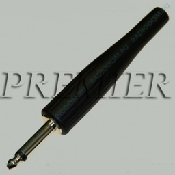 Разъем Jack 6,3мм штекер моно резин.корпус черный на кабель 1-120 BK Premier