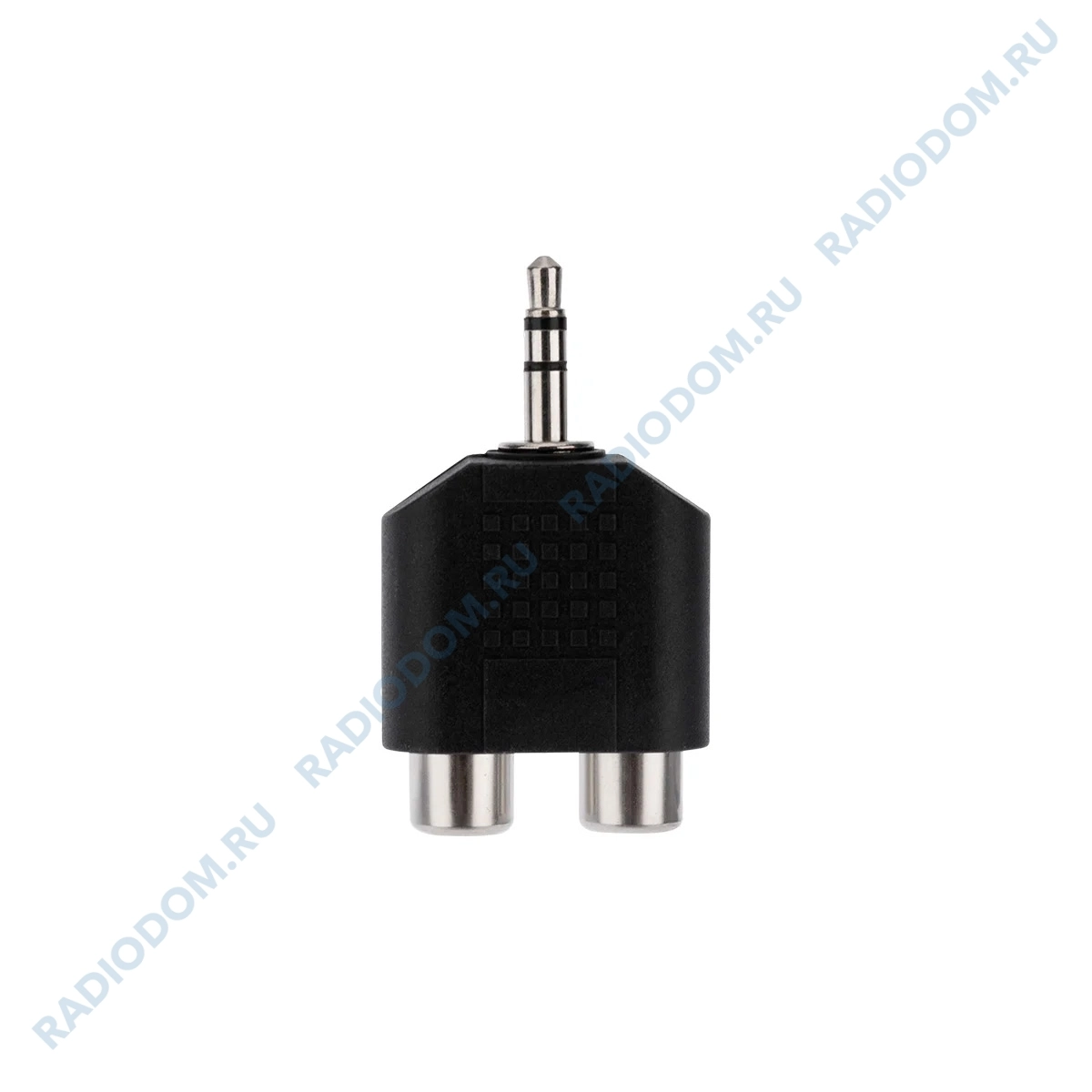 Переходник Jack 3,5 штекер стерео - 2 RCA гнездо пластик черный Rexant