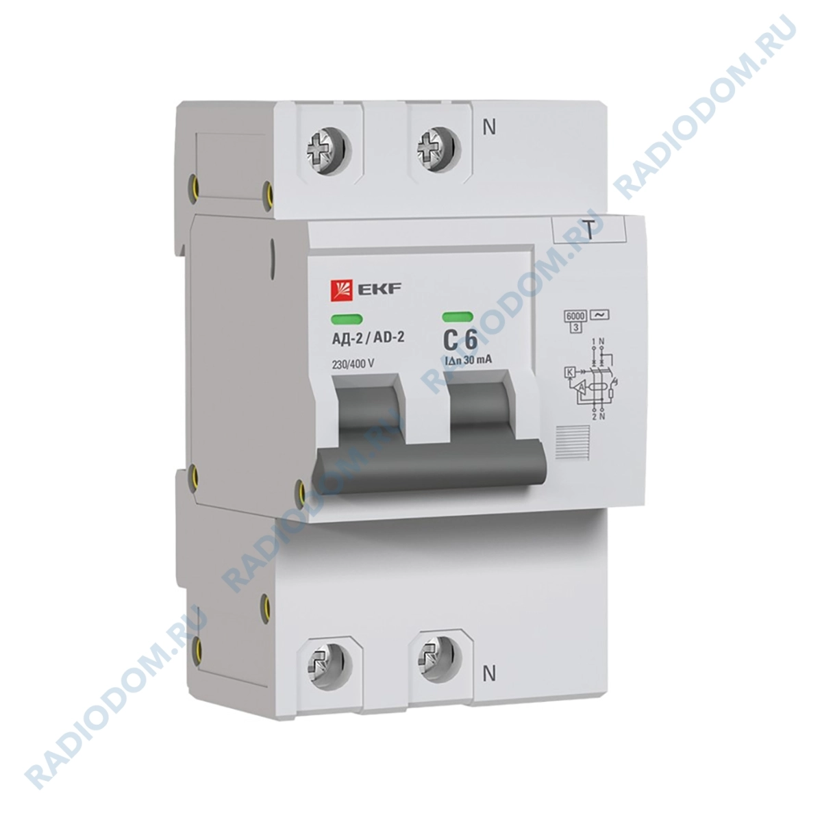 Автоматический выключатель дифференциального тока 2P 6А 30мА АД-2 х-ка C 6кА EKF