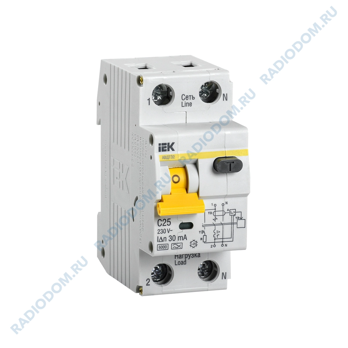 Автоматический выключатель дифференциального тока 2P 25А 30мА АВДТ32 х-ка C iEK