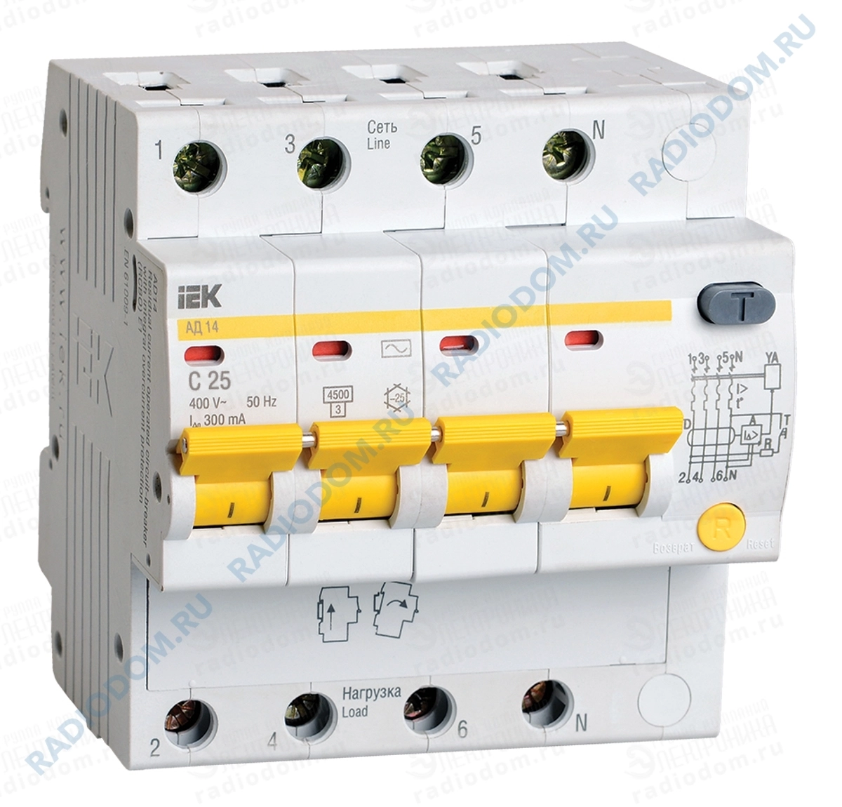 Автоматический выключатель дифференциального тока 4P 25А 300мА АД14 х-ка C iEK