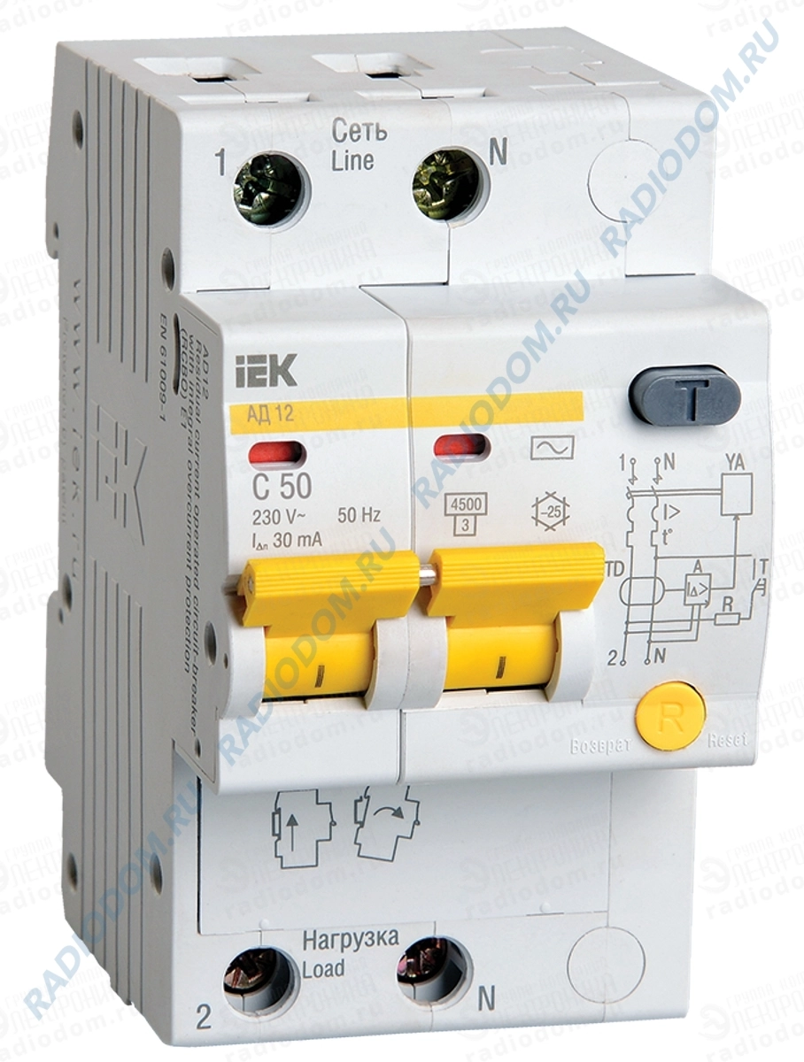 Автоматический выключатель дифференциального тока 2P 50А 100мА АВДТ32 х-ка C iEK