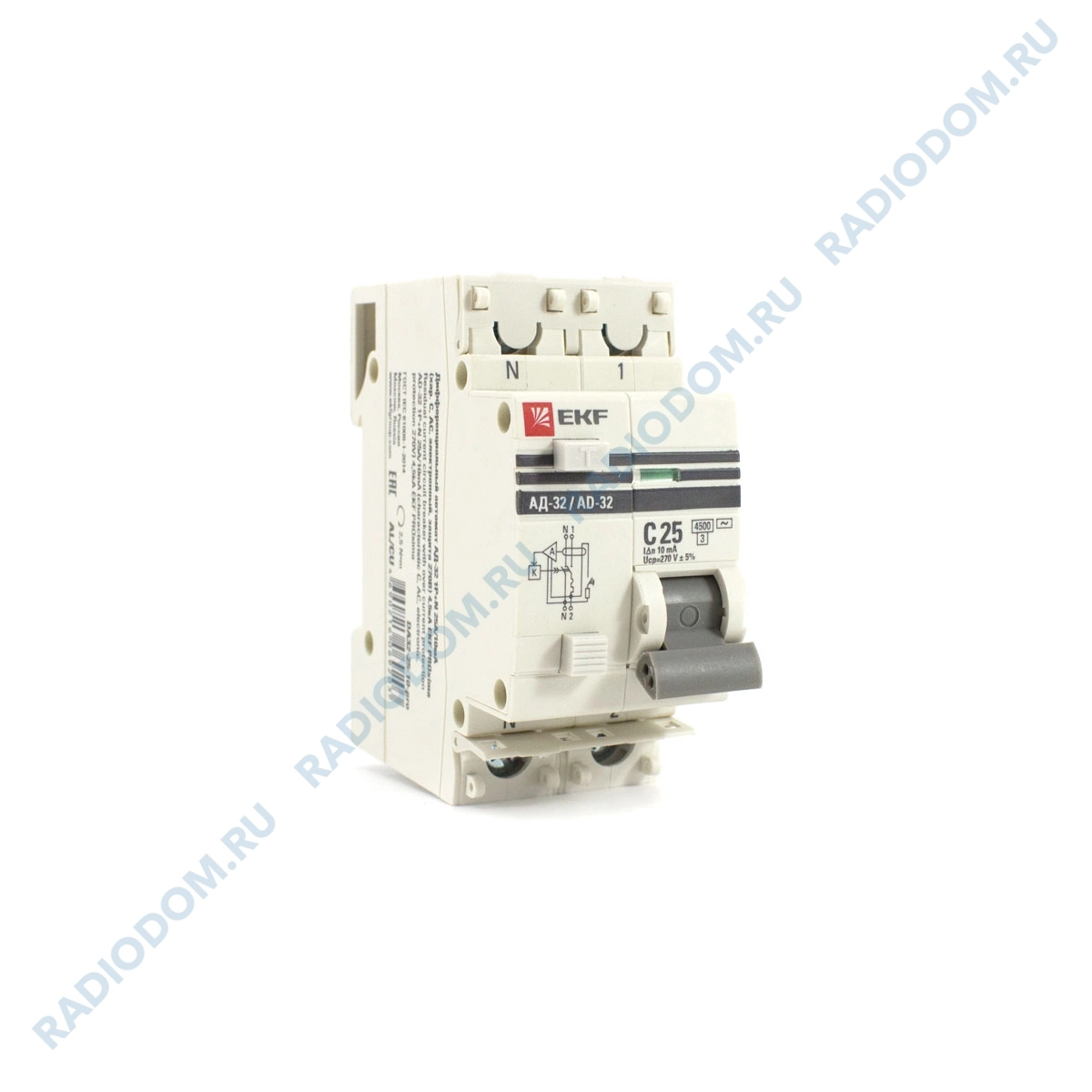 Автоматический выключатель дифференциального тока 1P+N 25А 10мА АД-32 х-ка С DA32-25-10-pro EKF