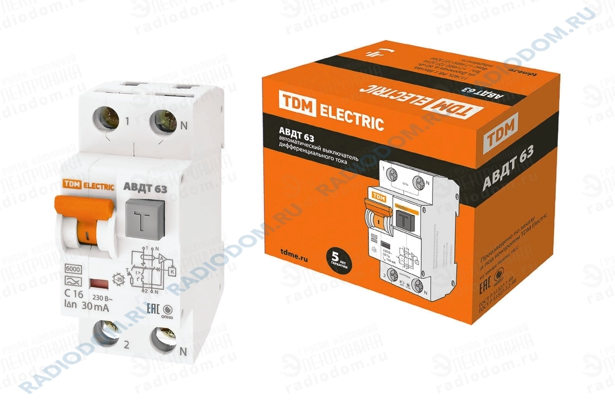 Автоматический выключатель дифференциального тока 2P 16A 30мА АВДТ63 х-ка С TDM ELECTRIC