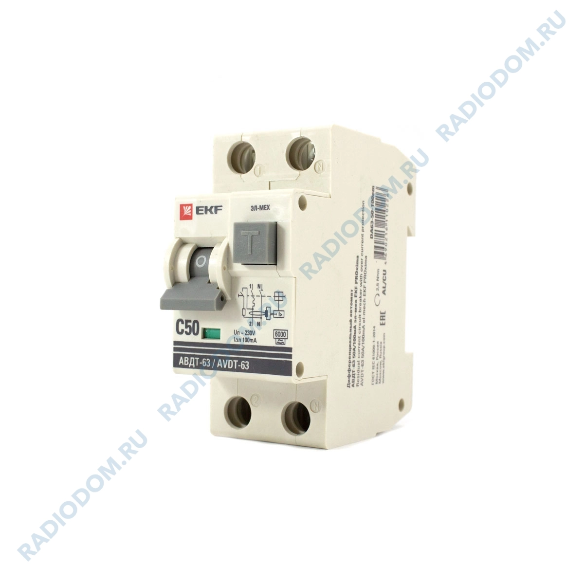 Автоматический выключатель дифференциального тока 2P 50А 100мА АВДТ-63 х-ка C DA63-50-100em EKF