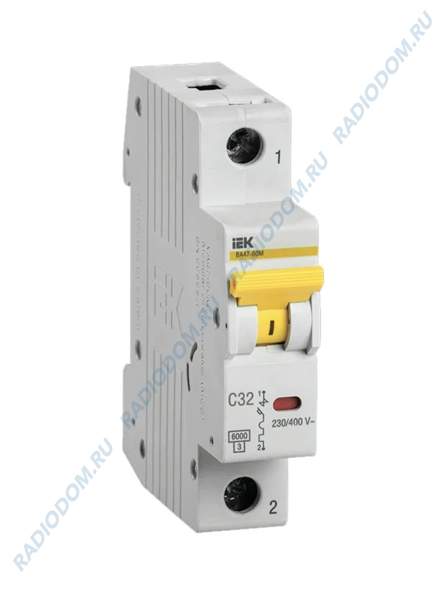 Автоматический выключатель 1P 32A (C) ВА47-60 6кА iEK MVA41-1-032-C