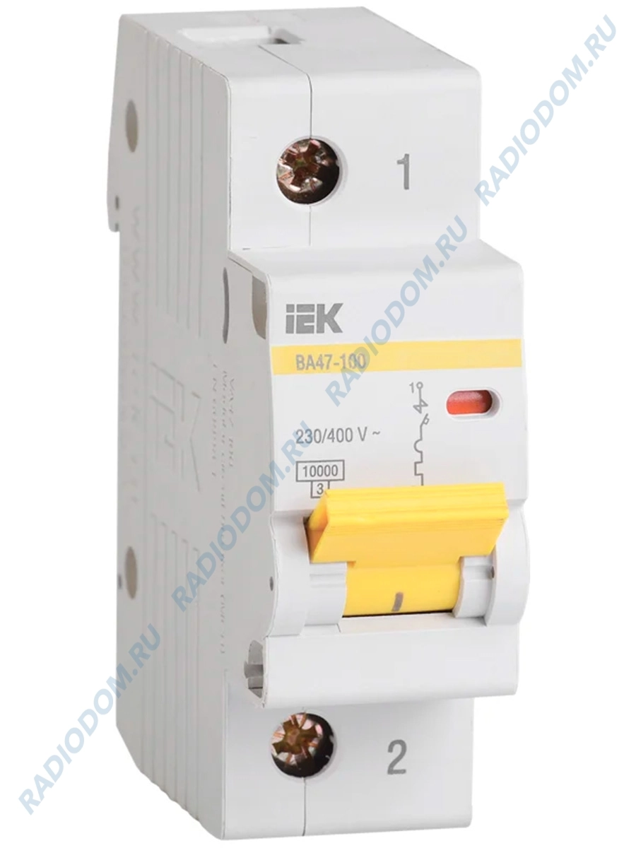 Автоматический выключатель iEK выполнен из прочного белого пластика и предназначен для защиты распределительных и групповых цепей от короткого замыкания и перегрузки по току.
