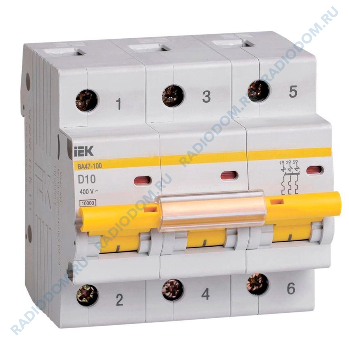 Автоматический выключатель iEK выполнен из прочного белого пластика и предназначен для защиты распределительных и групповых цепей от короткого замыкания и перегрузки по току.