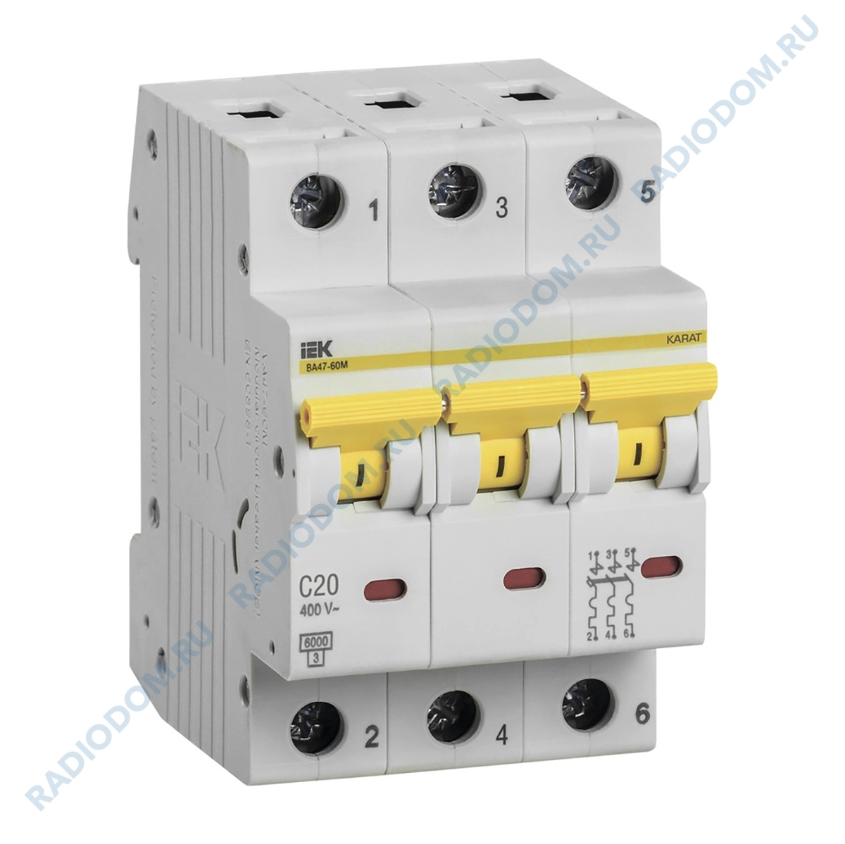 Автоматический выключатель 3P 20A (С) ВА47-60М 6кА iEK