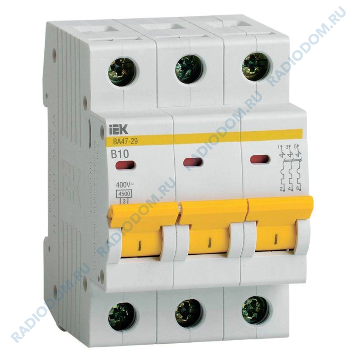 Автоматический выключатель 3P 10A (B) ВА47-29 4,5кА iEK
