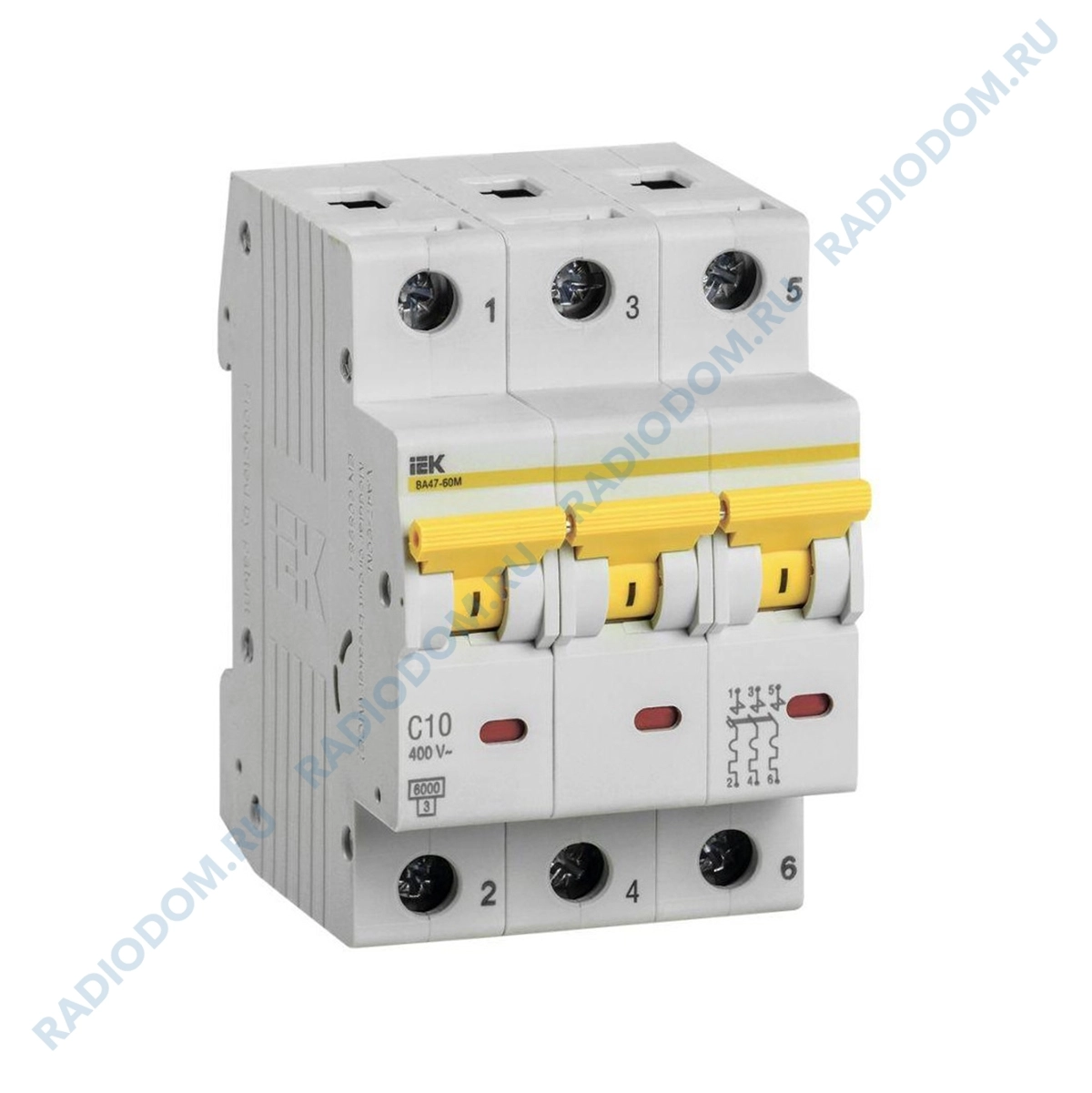 Автоматический выключатель iEK выполнен из прочного белого пластика и предназначен для защиты распределительных и групповых цепей от короткого замыкания и перегрузки по току.