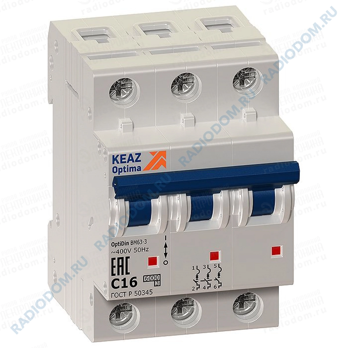 Автоматический выключатель 3P 10A (С) OptiDin BM63-3C10-УХЛ3 6кА КЭАЗ