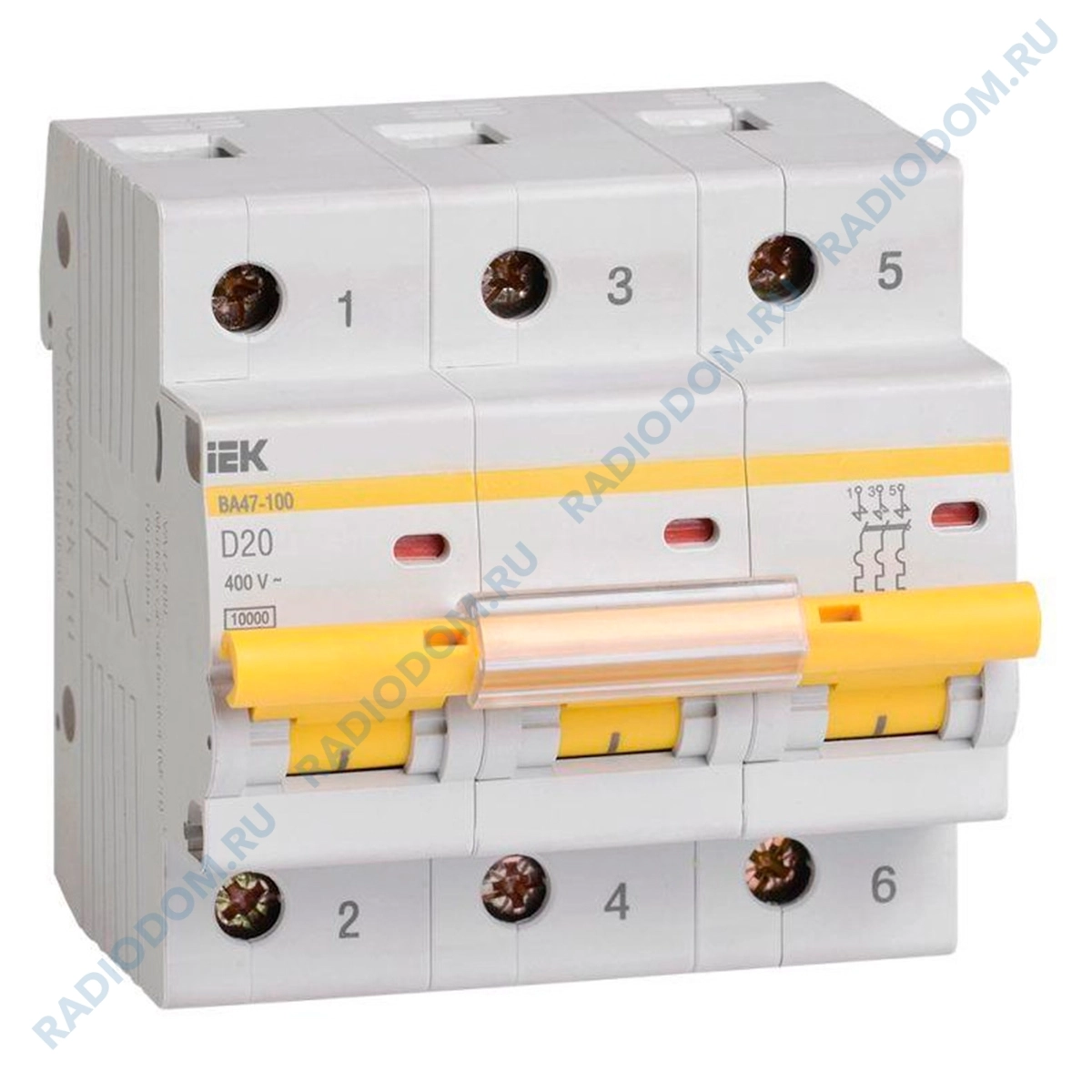 Автоматический выключатель 3P 20A (D) ВА47-100 10кА iEK