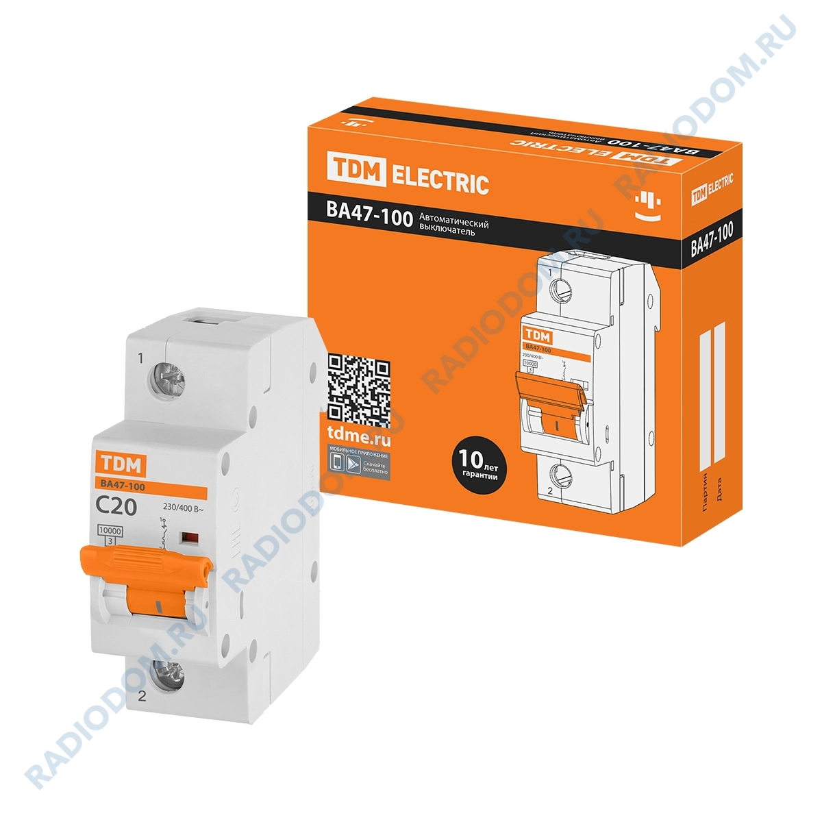 Автоматический выключатель 1P 20A (С) ВА47-100 10кА TDM ELECTRIC