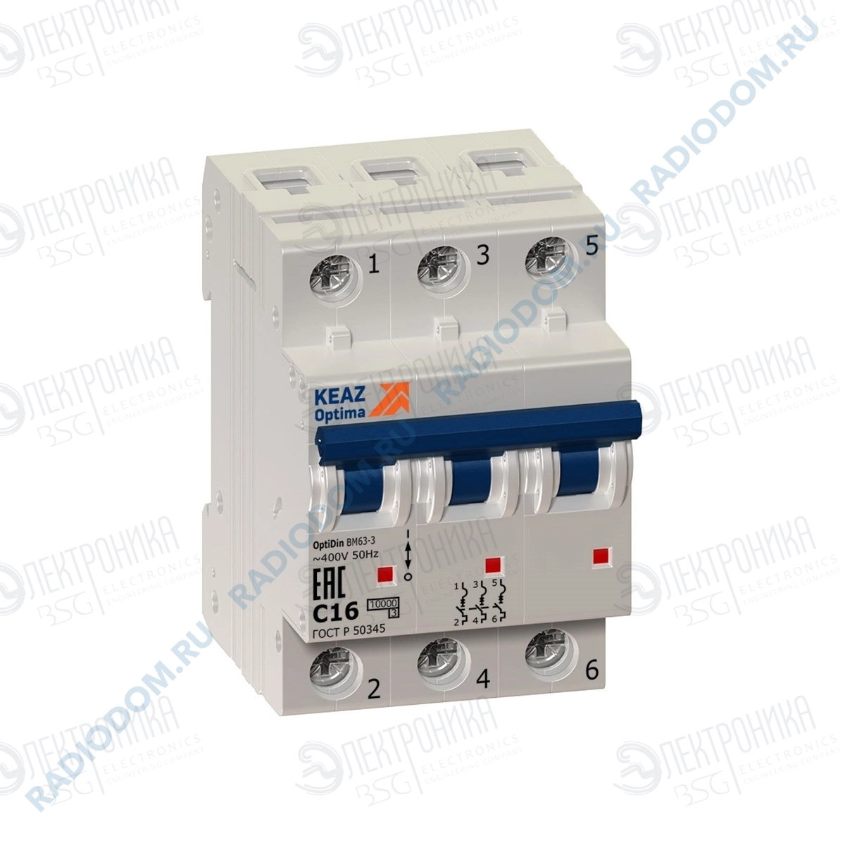 Автоматический выключатель 3P 63А OptiDin BM63-3C63-УХЛ3 КЭАЗ