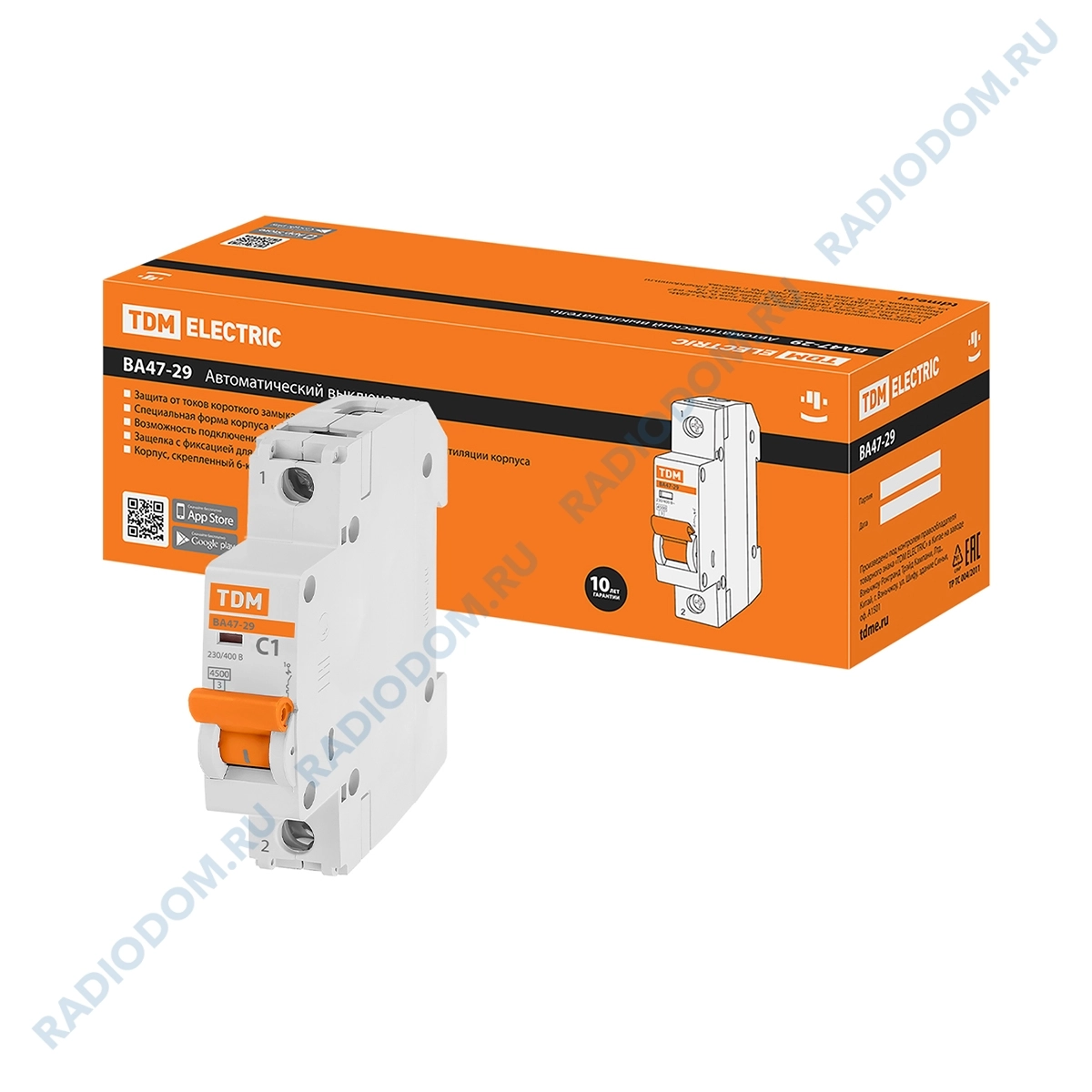 Автоматический выключатель 1P 1A (C) ВА47-29 4,5кА TDM ELECTRIC