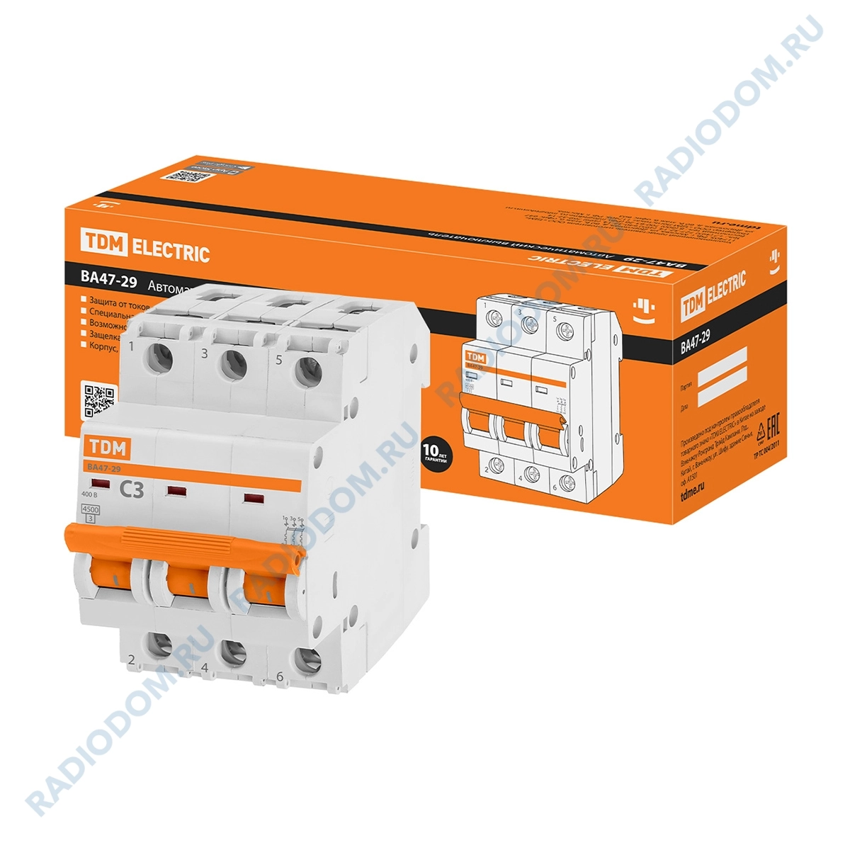Автоматический выключатель 3P 3A (C) ВА47-29 4,5кА TDM ELECTRIC
