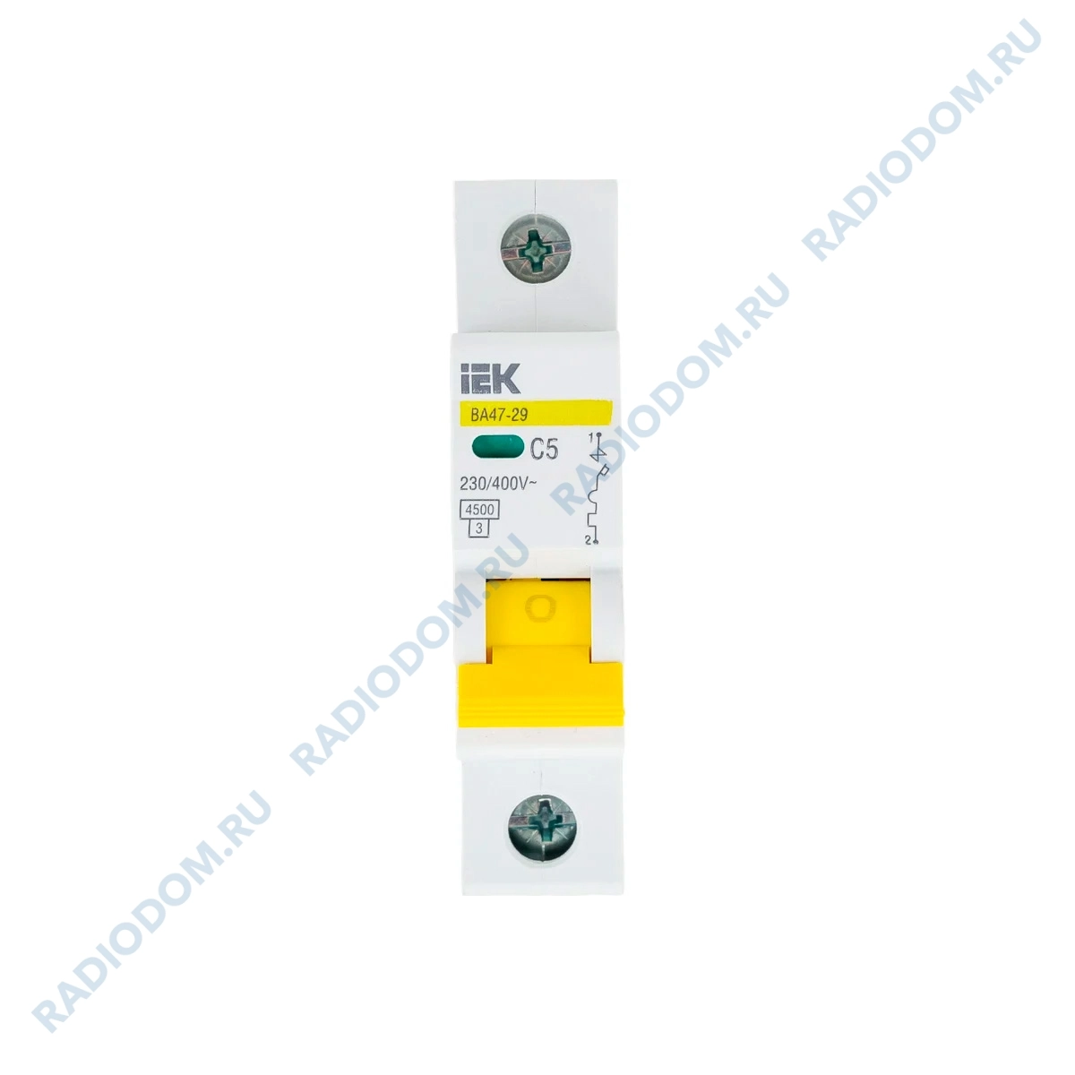 Автоматический выключатель iEK выполнен из прочного белого пластика и предназначен для защиты распределительных и групповых цепей от короткого замыкания и перегрузки по току.