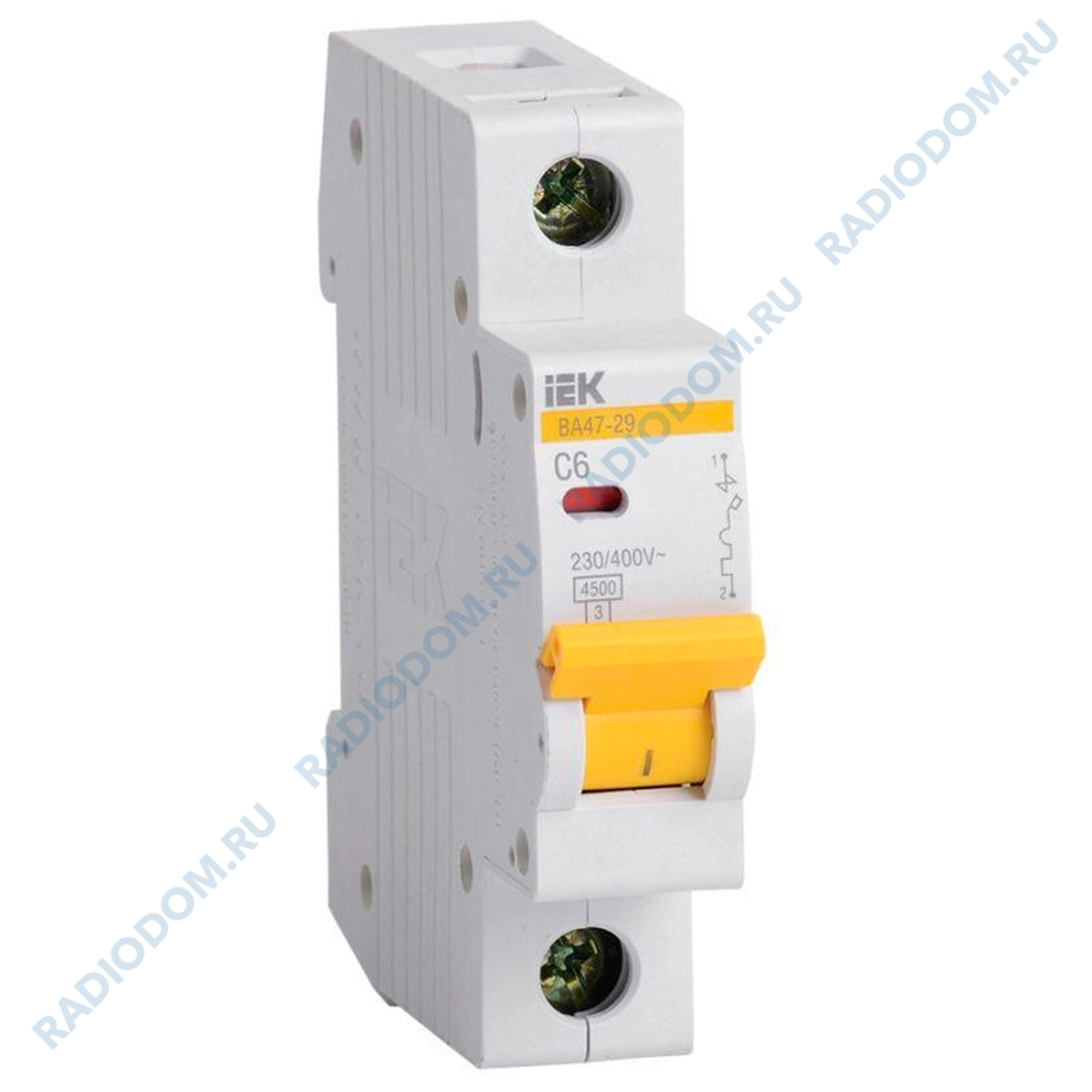 Автоматический выключатель 1P 6A (C) ВА47-29 4,5кА IEK