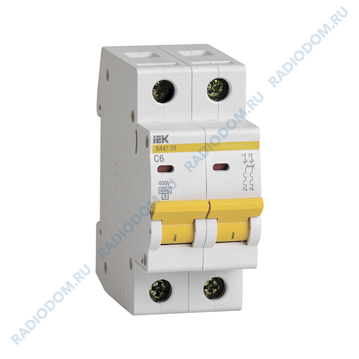 Автоматический выключатель iEK выполнен из прочного белого пластика и предназначен для защиты распределительных и групповых цепей от короткого замыкания и перегрузки по току.