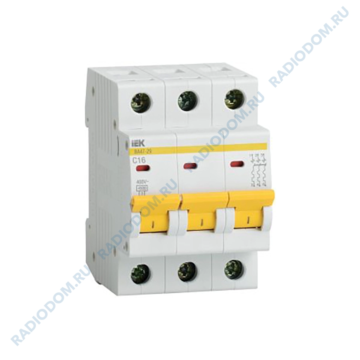 Автоматический выключатель iEK выполнен из прочного белого пластика и предназначен для защиты распределительных и групповых цепей от короткого замыкания и перегрузки по току.