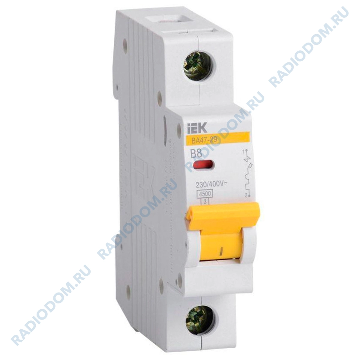 Автоматический выключатель iEK выполнен из прочного белого пластика и предназначен для защиты распределительных и групповых цепей от короткого замыкания и перегрузки по току.