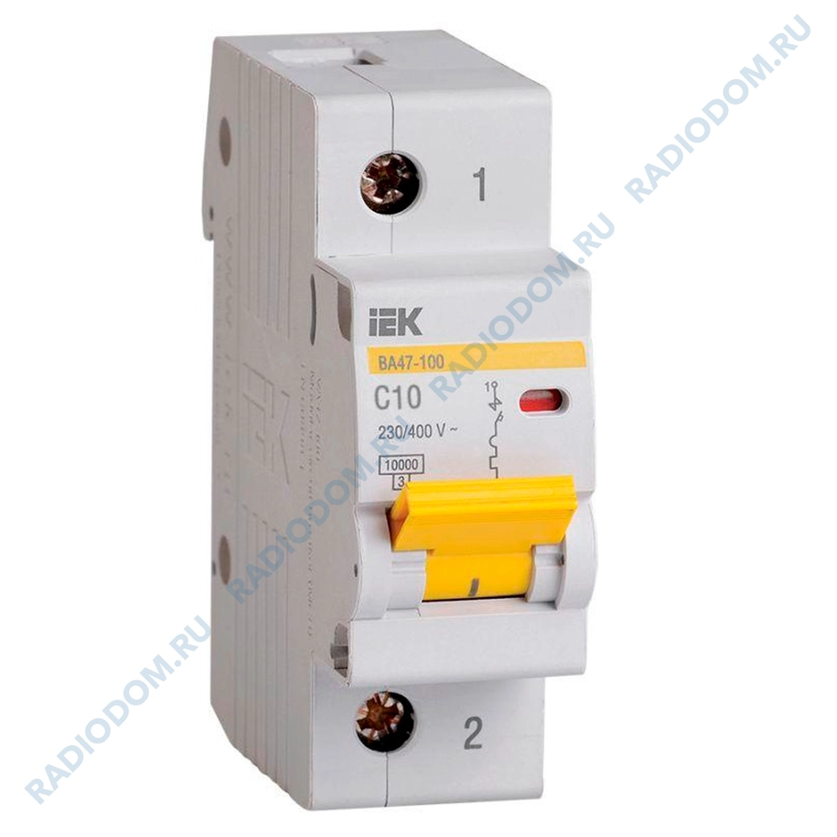 Автоматический выключатель iEK выполнен из прочного белого пластика и предназначен для защиты распределительных и групповых цепей от короткого замыкания и перегрузки по току. Данная модель обладает время-токовой характеристикой - C. Номинальное напряжение выключателя - 230/400 В Номинальный ток – 10 А. Количество полюсов – 1. Отключающая способность прибора - 10 кА. Степень зашиты - IP20 Тип расцепителя модели – тепловой, электромагнитный. Максимальное сечение входящего кабеля – 35 мм². Тип монтажа – на DIN-рейку. Монтажная глубина – 74,3 мм. Расчетный срок службы – 15 лет. Диапазон рабочих температур модели от -40 до +50.