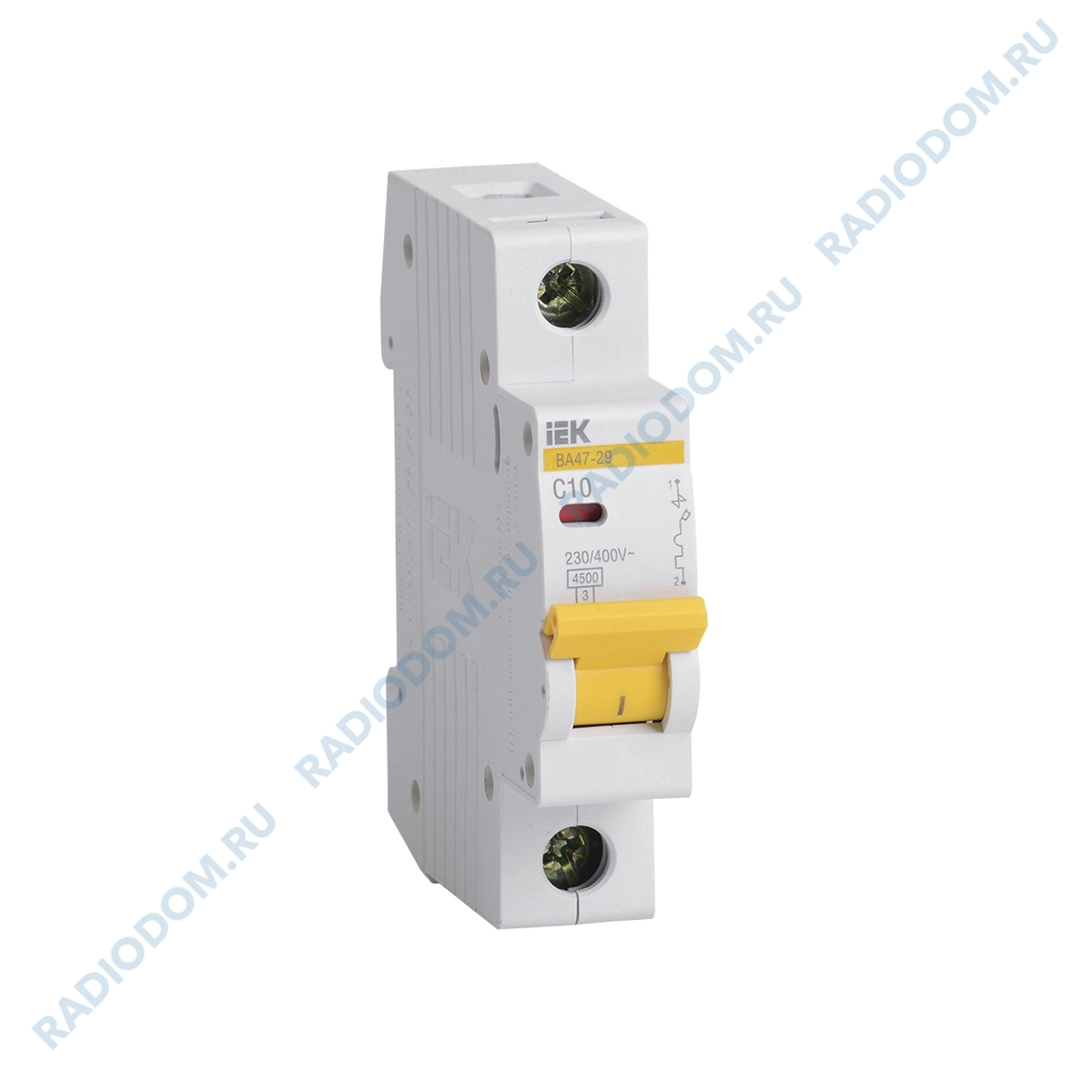 Автоматический выключатель iEK выполнен из прочного белого пластика и предназначен для защиты распределительных и групповых цепей от короткого замыкания и перегрузки по току.