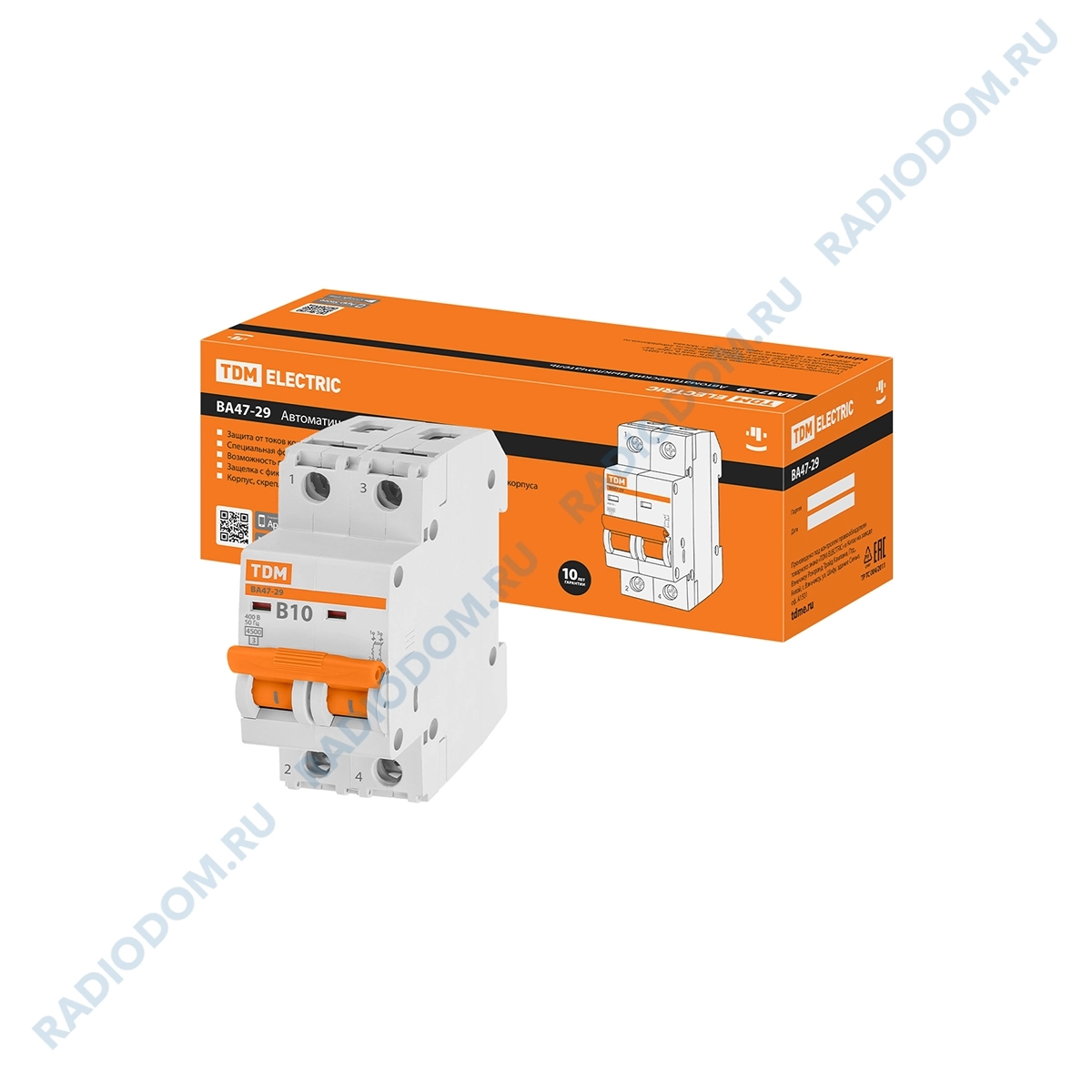 Автоматический выключатель 2P 10A (B) ВА47-29 4,5кА TDM ELECTRIC