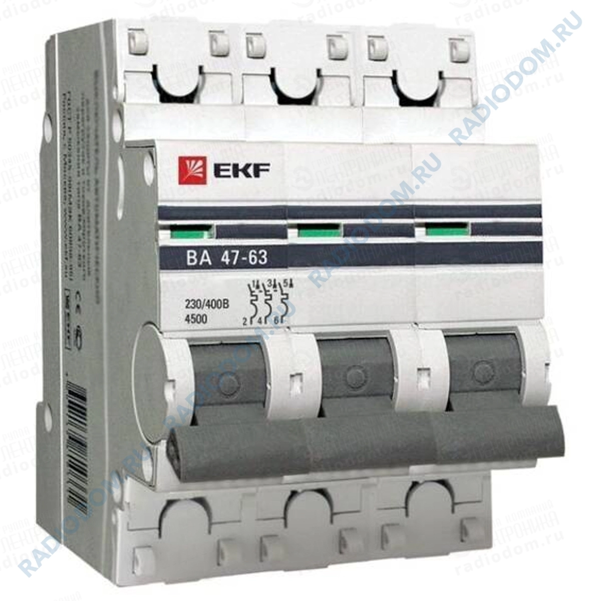 Автоматический выключатель 3P 10A (D) ВА47-63 4,5кА EKF