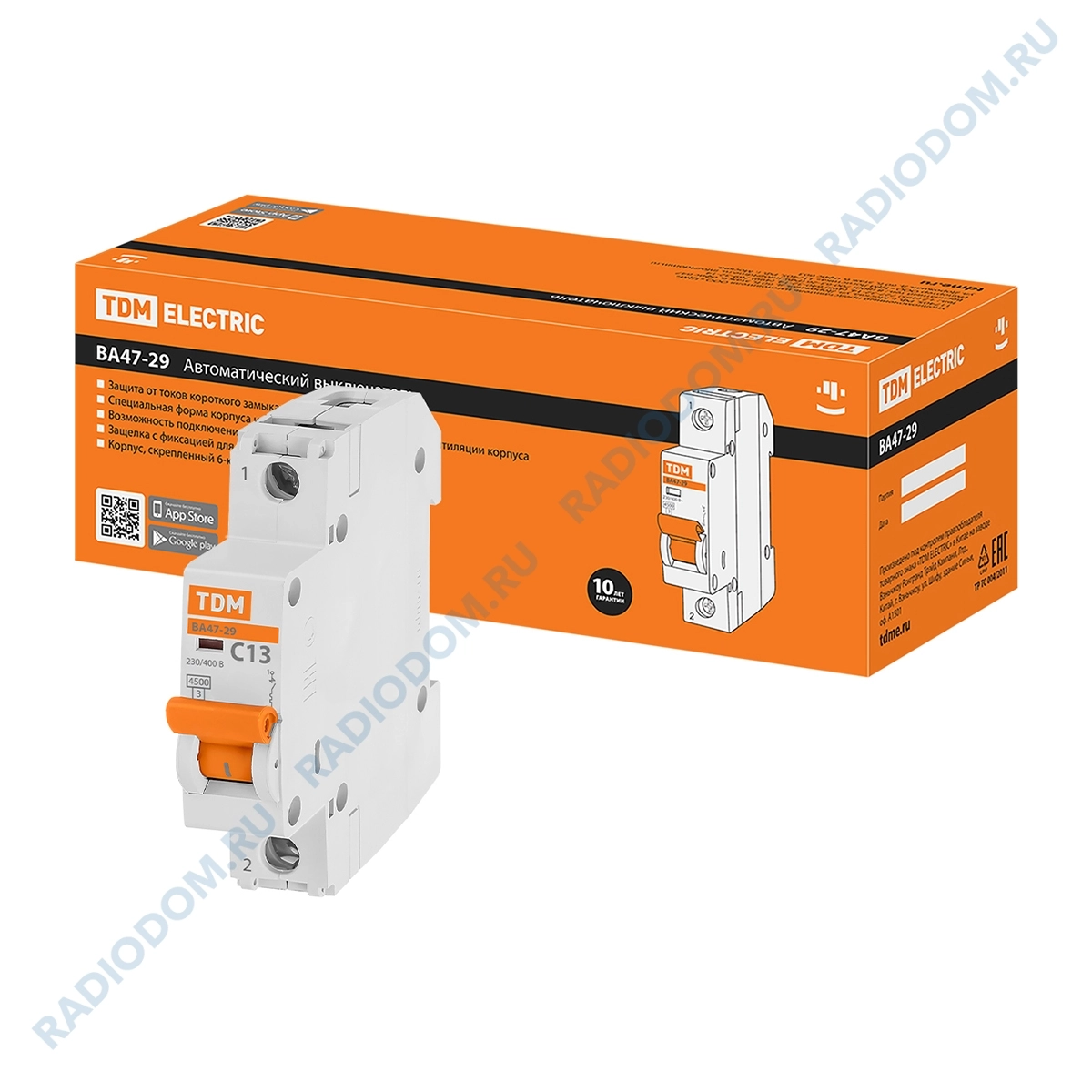 Автоматический выключатель ВА47-29 TDM SQ0206-0073 предназначен для проведения тока в нормальном режиме, отключения тока при коротких замыканиях или перегрузке, оперативного включения и выключения электрических цепей.