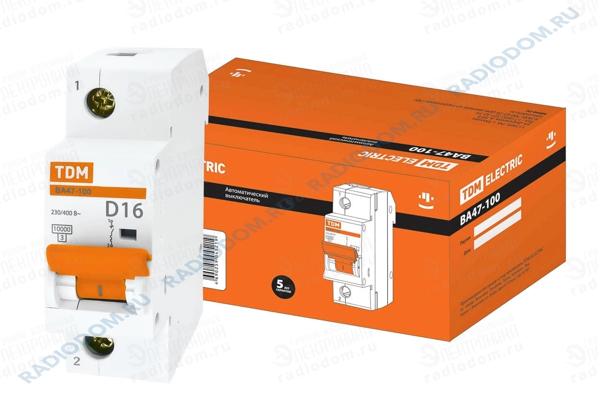 Автоматический выключатель 1P 16A (D) ВА47-100 10кА TDM ELECTRIC