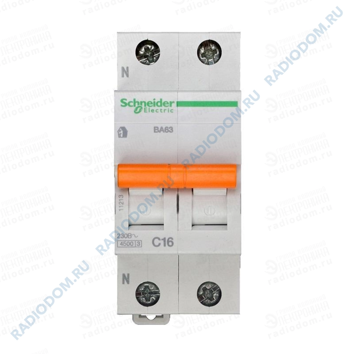 Автоматический выключатель 2P 16A (C) ВА63 4,5кА Systeme Electric