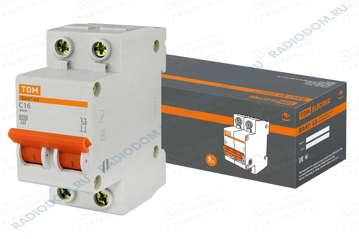 Автоматический выключатель 2P 16A (C) ВА47-63 4,5кА TDM ELECTRIC