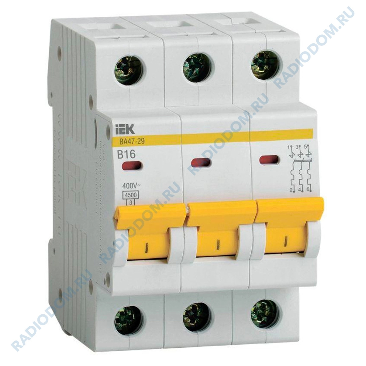Автоматический выключатель iEK выполнен из прочного белого пластика и предназначен для защиты распределительных и групповых цепей от короткого замыкания и перегрузки по току.