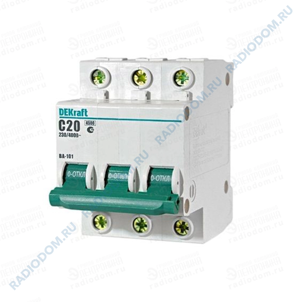 Автоматический выключатель 3P 20A (C) ВА-101 4,5кА DEKraft