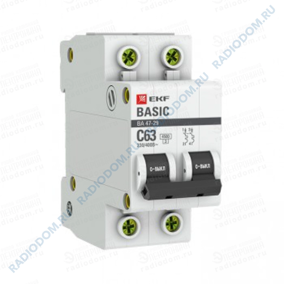 Автоматический выключатель ВА 47-29 механическое коммутационное устройство, предназначенное для включения (отключения) электрической цепи, а также защиты от короткого замыкания и перенапряжения. В выключателях имеются пластиковые крышки, закрывающие доступ к винтовому зажиму и служащие для опломбирования выключателей, что исключает несанкционированный доступ к проводникам. Корпус выключателей усилен дополнительными заклепками для устранения эффекта расхождения корпуса. Рабочий ток 25 А. Ширина равна 2 модулям. Глубина установки 50 мм. Возможна коммутация медным и алюминиевым проводником. Максимальное сечение подключаемого кабеля 25 мм2. Номинальная отключающая способность 4,5 кА. Общее количество полюсов – 2. Гарантия от производителя 3 года.