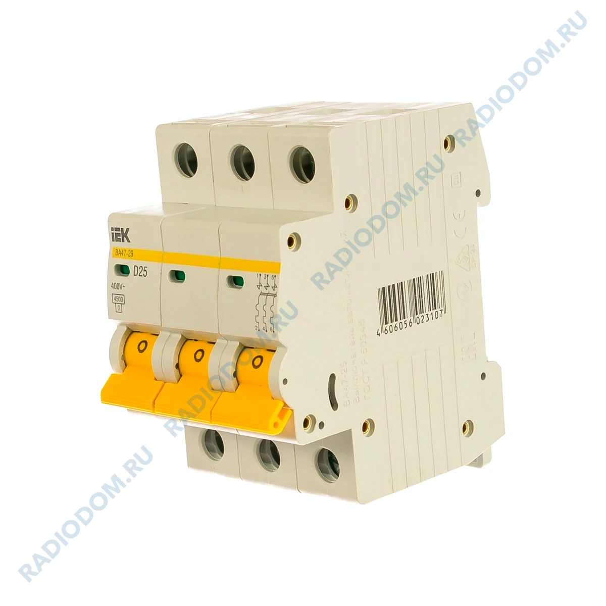Автоматический выключатель iEK выполнен из прочного белого пластика и предназначен для защиты распределительных и групповых цепей от короткого замыкания и перегрузки по току.