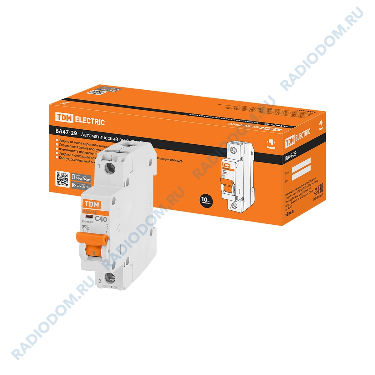 Автоматический выключатель 1P 40A (C) ВА47-29 4,5кА TDM