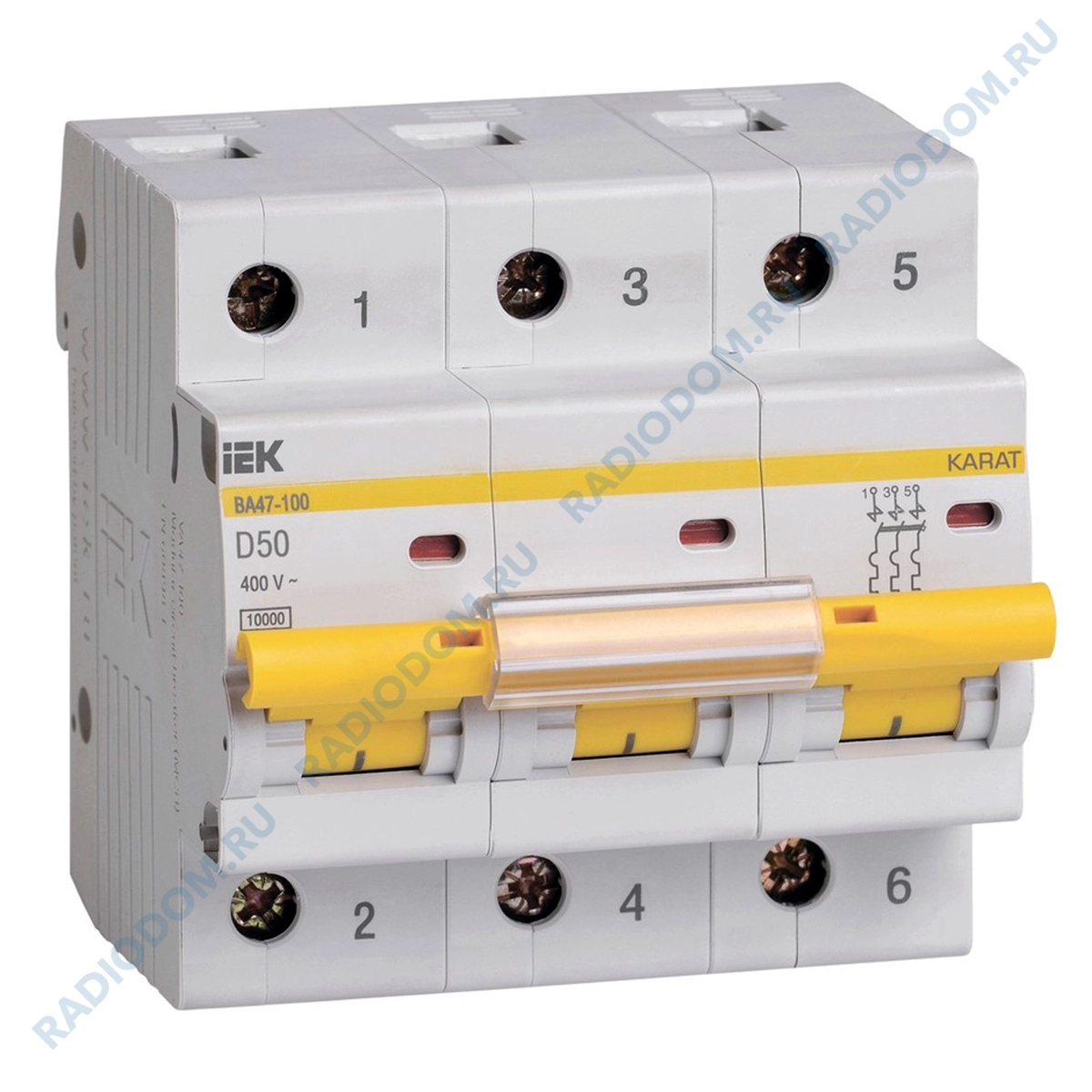 Автоматический выключатель iEK выполнен из прочного белого пластика и предназначен для защиты распределительных и групповых цепей от короткого замыкания и перегрузки по току.