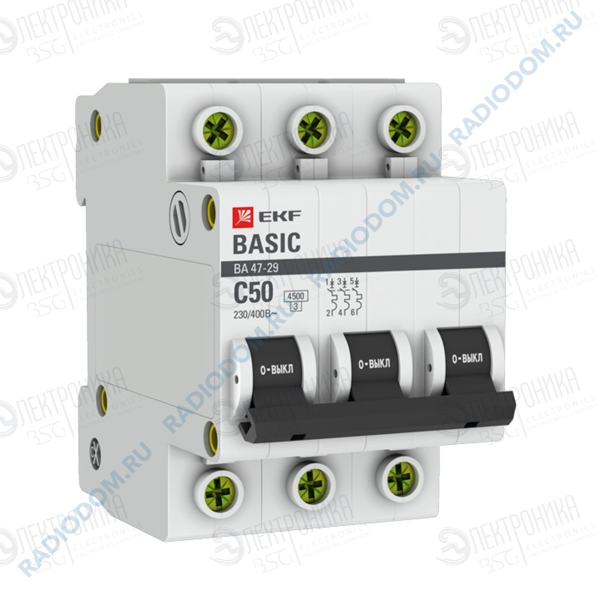 Автоматический выключатель 50А 3P BA47-29 4,5кА х-ка C mcb4729-3-50C EKF