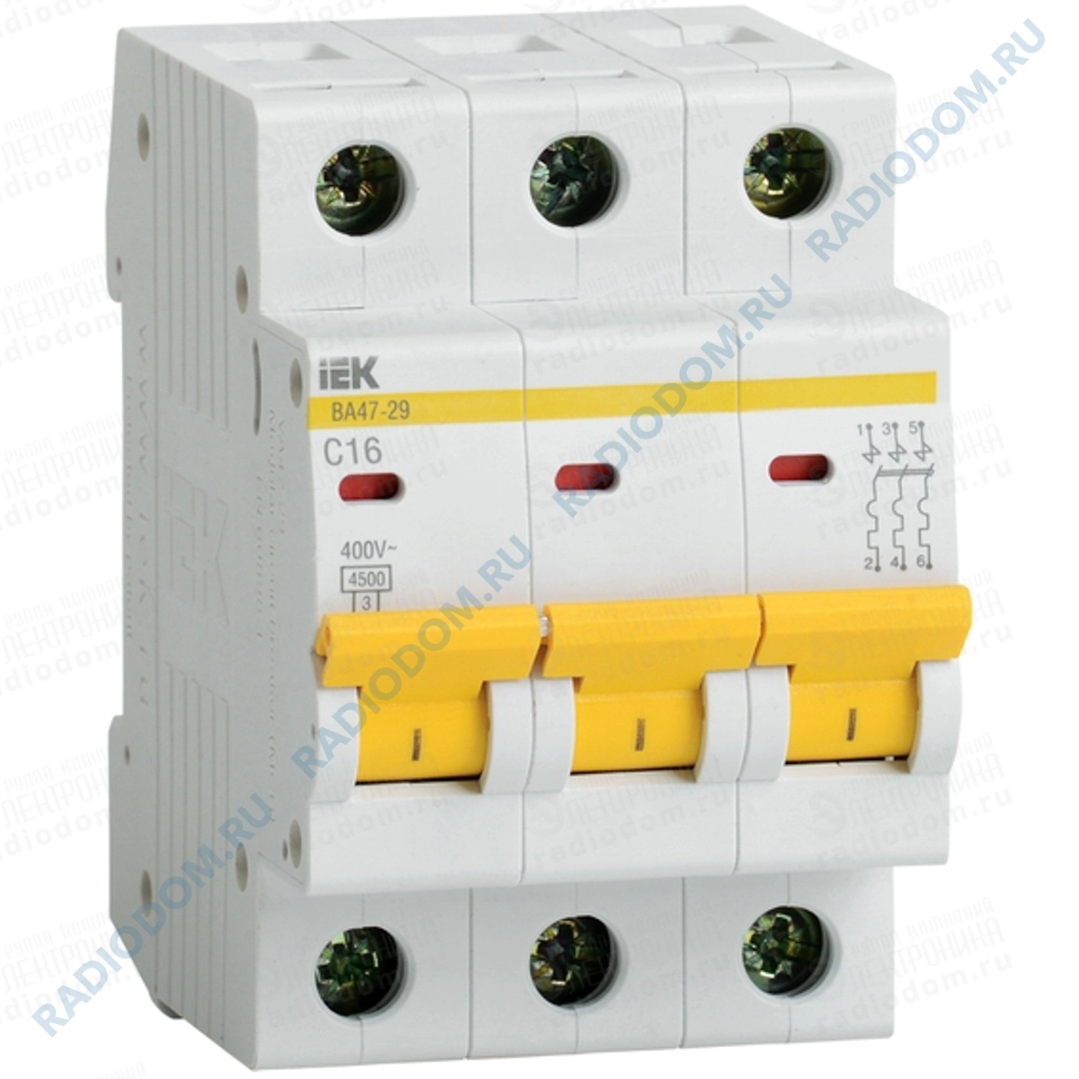 Автоматический выключатель iEK выполнен из прочного белого пластика и предназначен для защиты распределительных и групповых цепей от короткого замыкания и перегрузки по току.