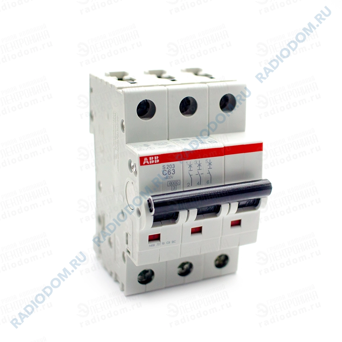 Автоматический выключатель 63А 3P 6кА характеристика C S203 ABB