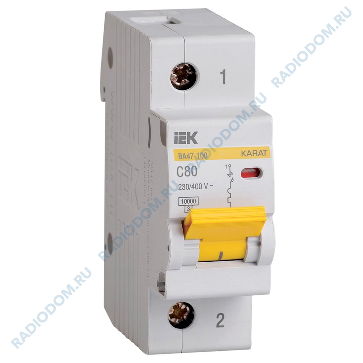 Автоматический выключатель iEK выполнен из прочного белого пластика и предназначен для защиты распределительных и групповых цепей от короткого замыкания и перегрузки по току.