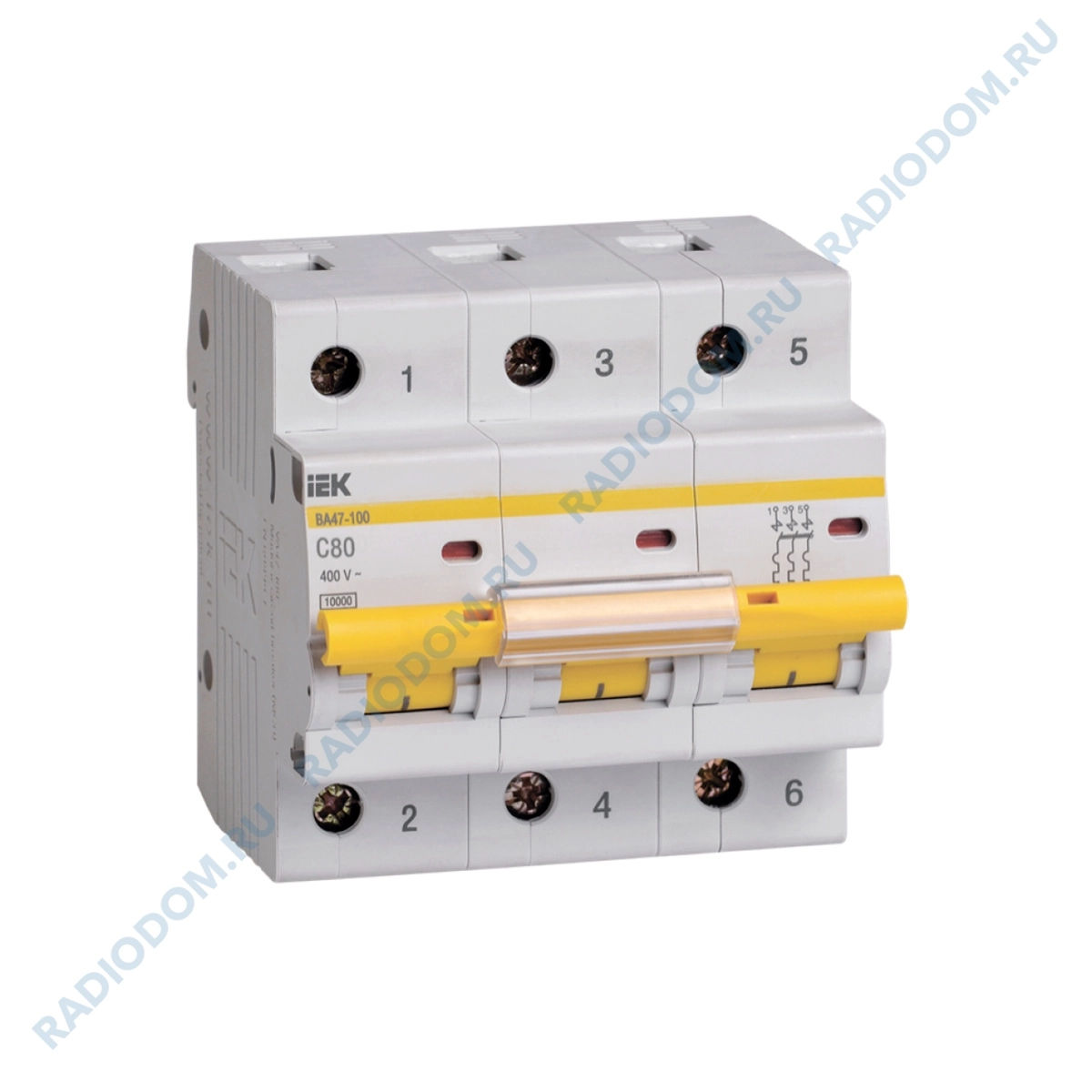 Автоматический выключатель 3P 80A (C) ВА47-100 10кА IEK