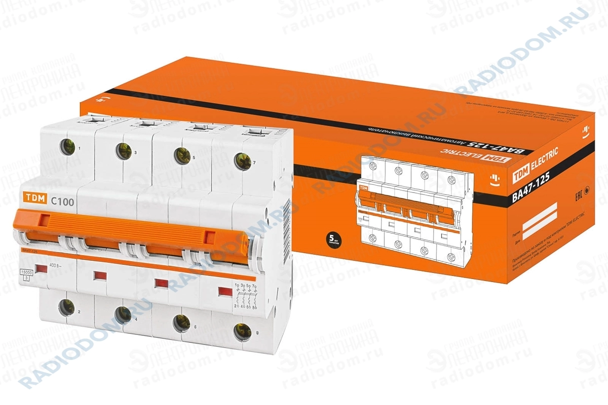 Автоматический выключатель 100А 4P BA47-125 15кА х-ка С TDM ELECTRIC SQ0208-0095