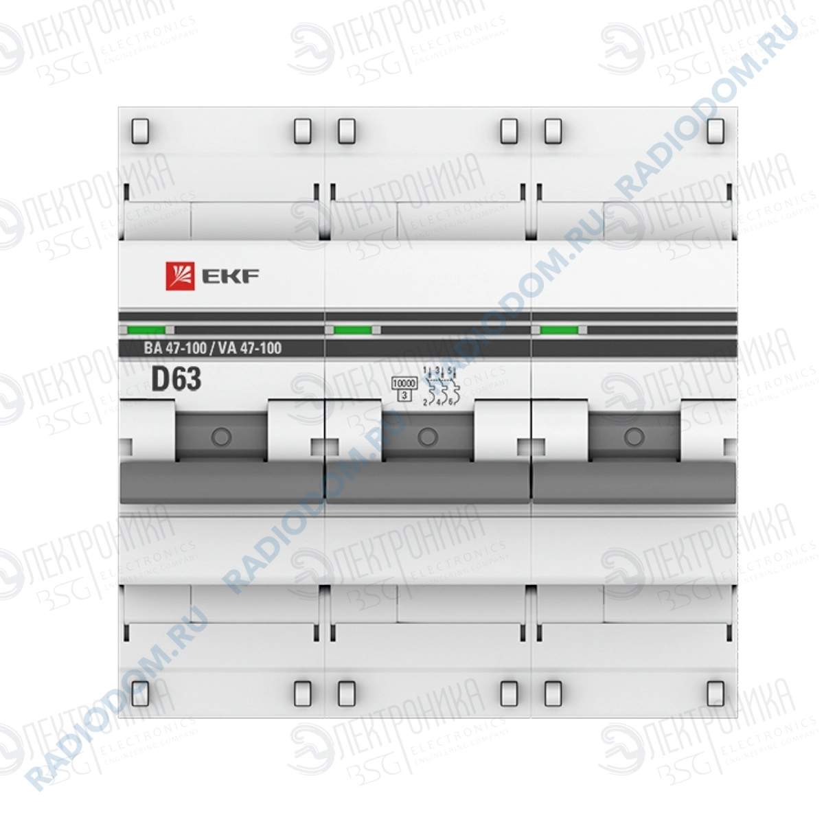 Автоматический выключатель ВА 47-100 механическое коммутационное устройство, предназначенное для включения (отключения) электрической цепи, а также защиты от короткого замыкания и перенапряжения. В выключателях имеются пластиковые крышки, закрывающие доступ к винтовому зажиму и служащие для опломбирования выключателей, что исключает несанкционированный доступ к проводникам. Корпус выключателей усилен дополнительными заклепками для устранения эффекта расхождения корпуса. Рабочий ток 63 А. Номинальная отключающая способность 10 кА. Ширина равна 3 модулям. Глубина установки 50 мм. Возможна коммутация медным и алюминиевым проводником. Максимальное сечение подключаемого кабеля 35 мм2. Общее количество полюсов – 3. Гарантия от производителя 7 лет.